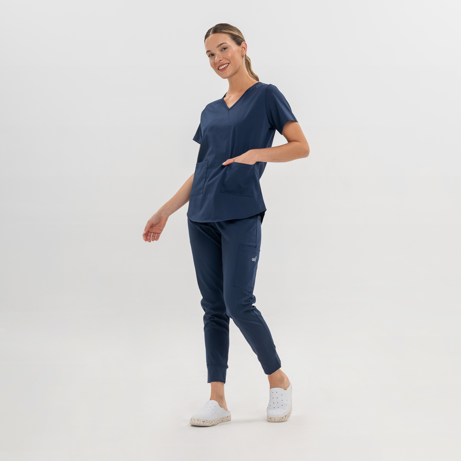 Pantalón tipo jogger chupín y cintura extra fit de tiro medio con elástico. Dos bolsillos delanteros y uno lateral en la pierna. Botamanga ajustada al tobillo ultra anatómica y cordón de ajuste a contra tono en la cintura