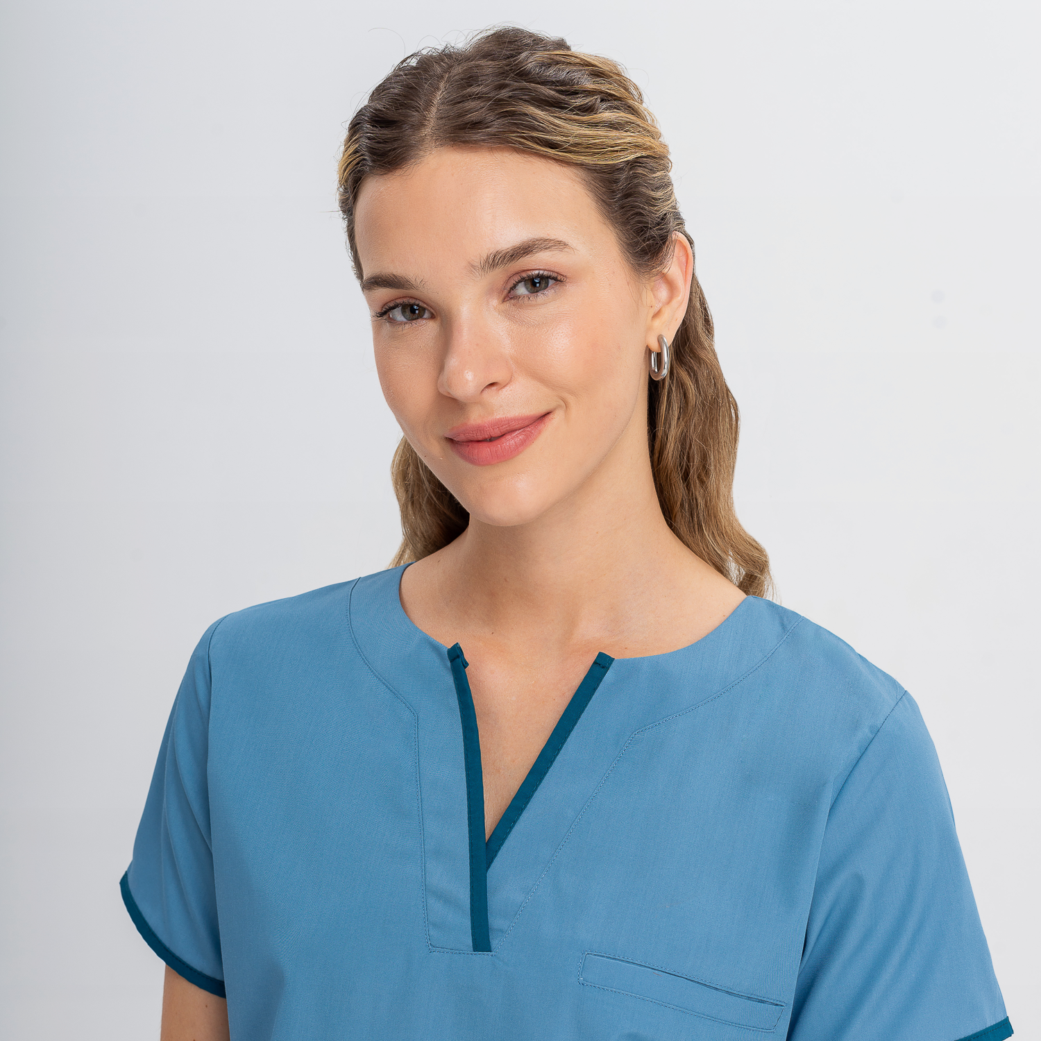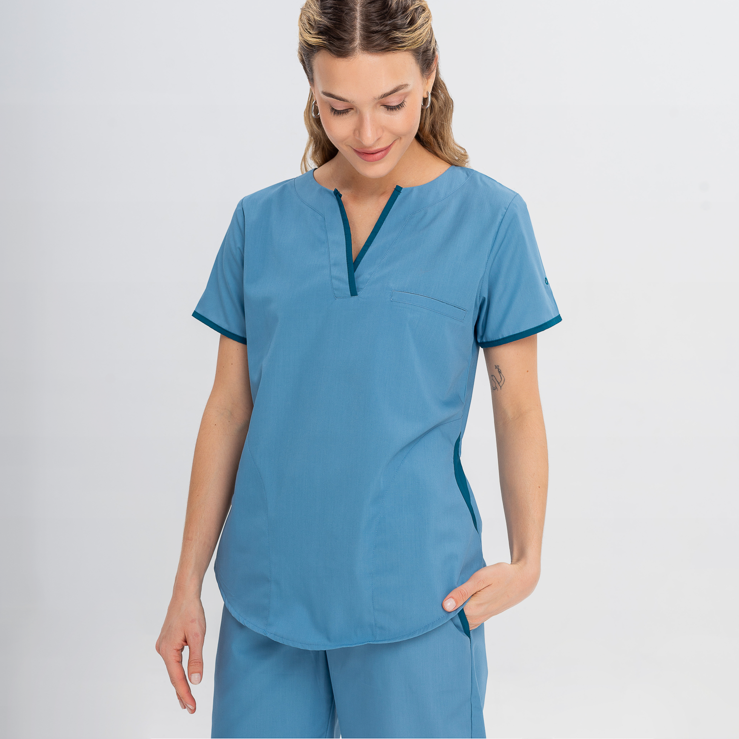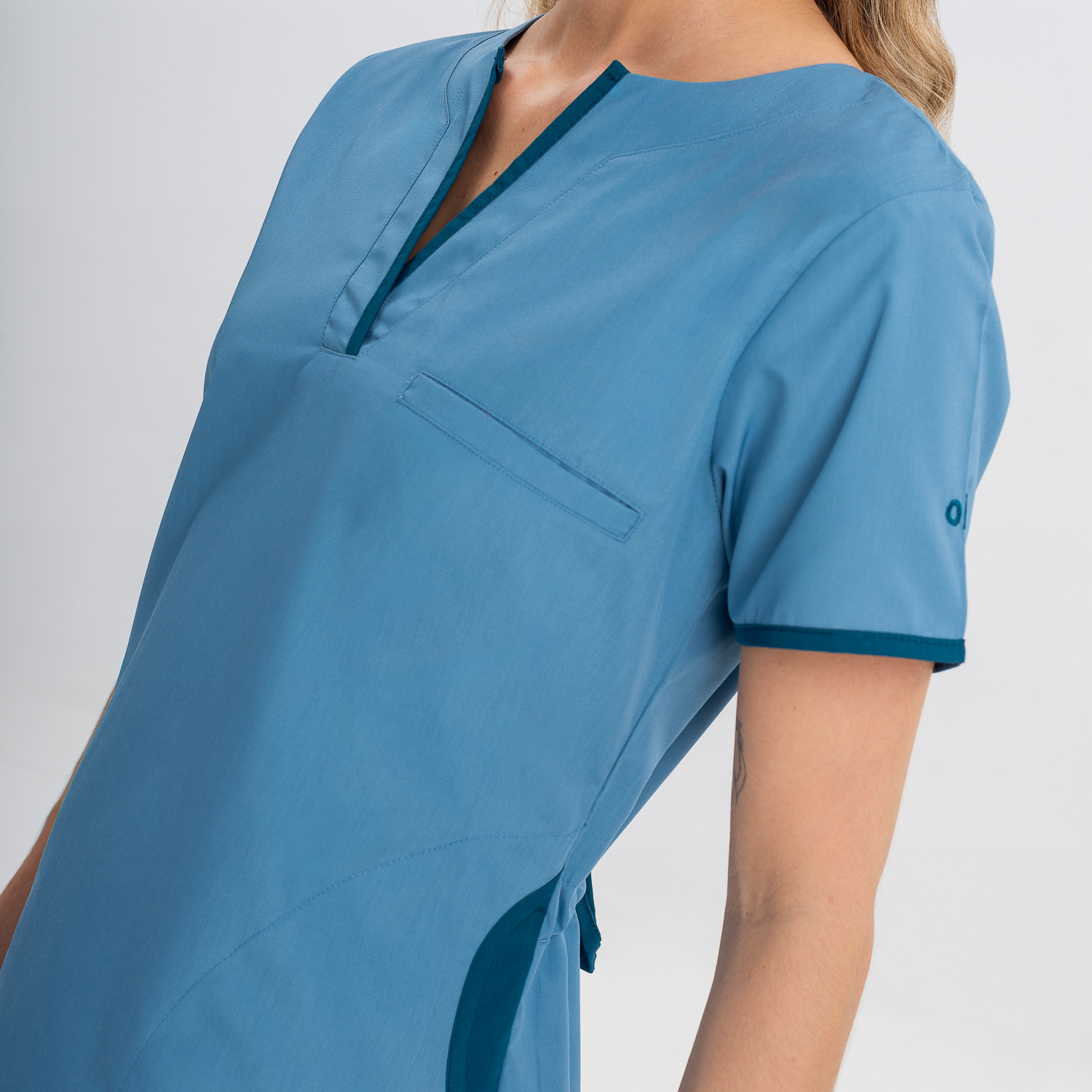 Chaqueta y pantalón color aero con vivos en color petróleo.