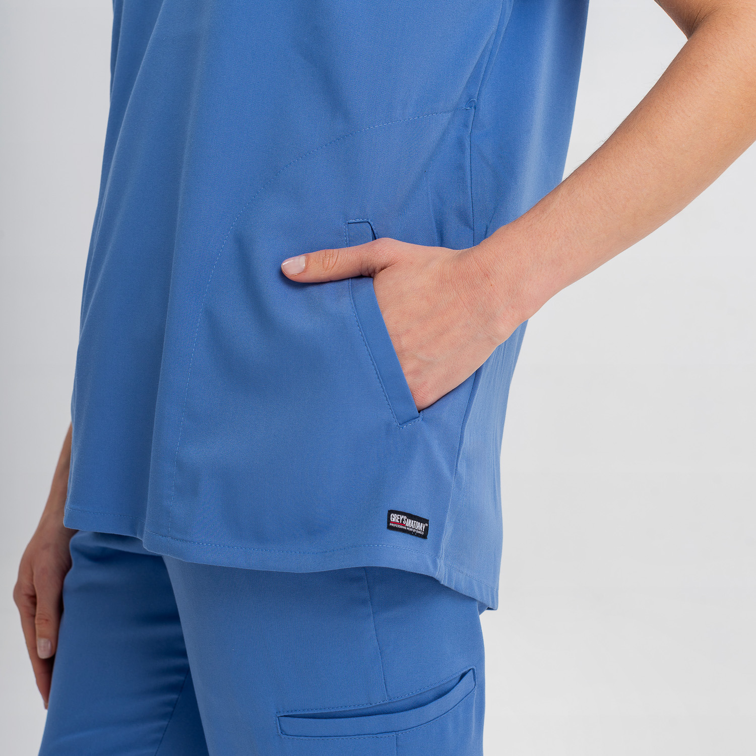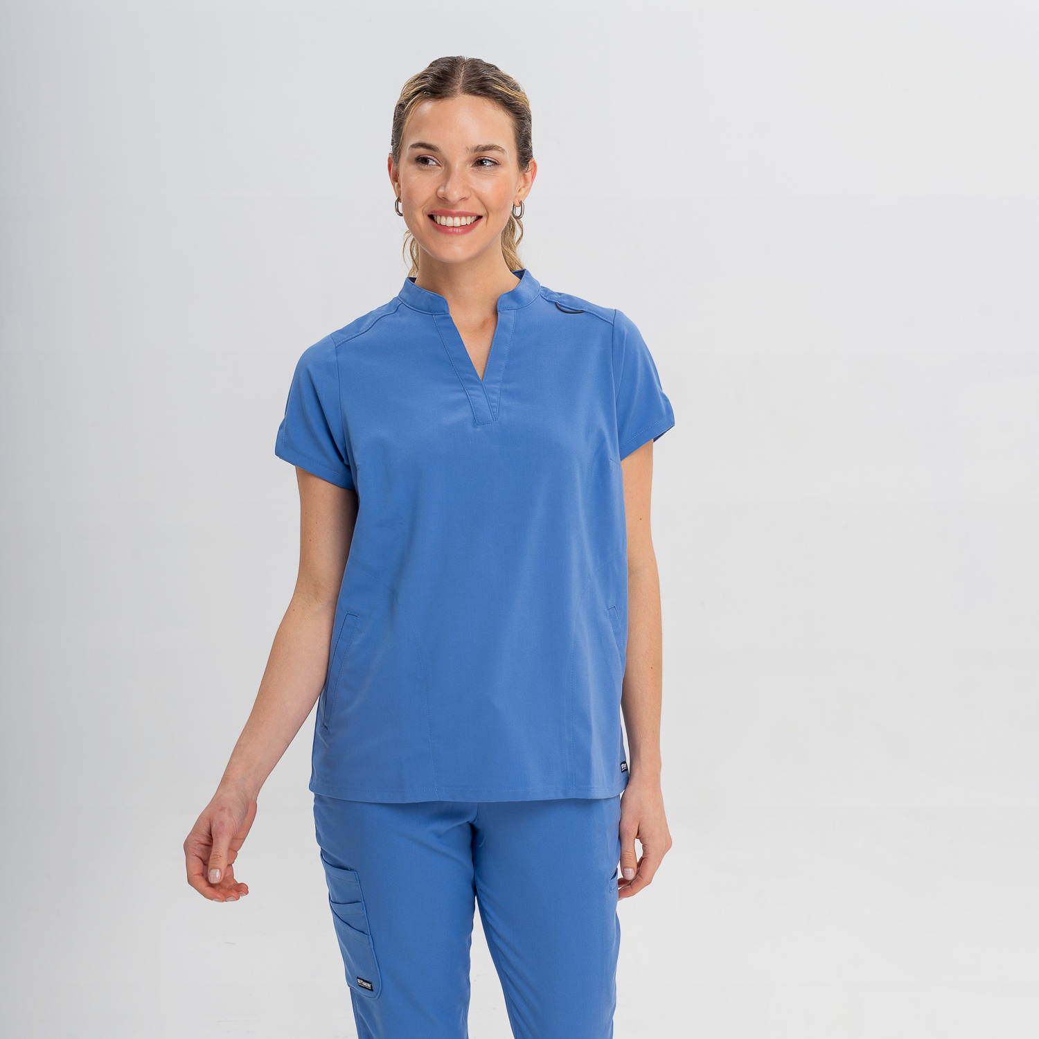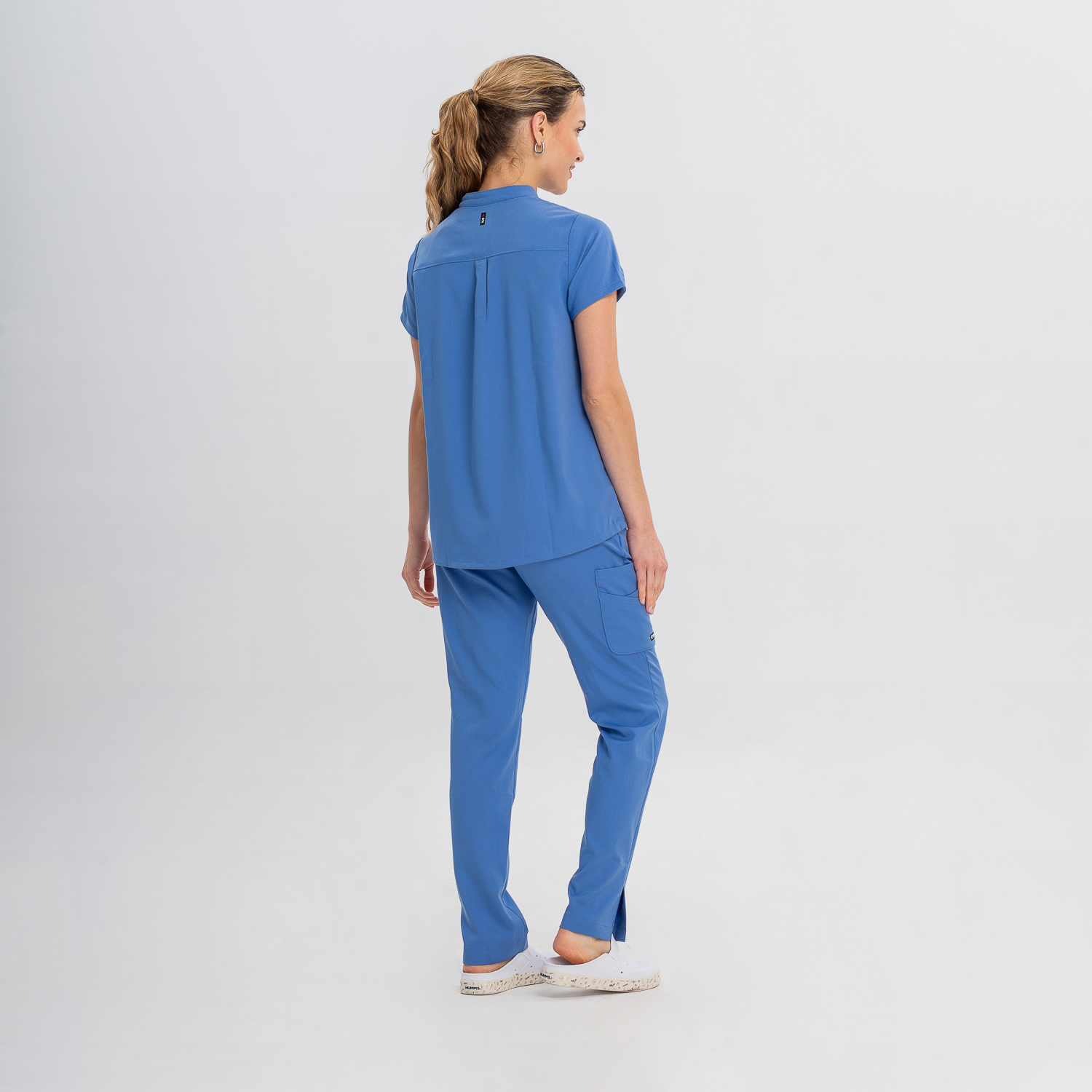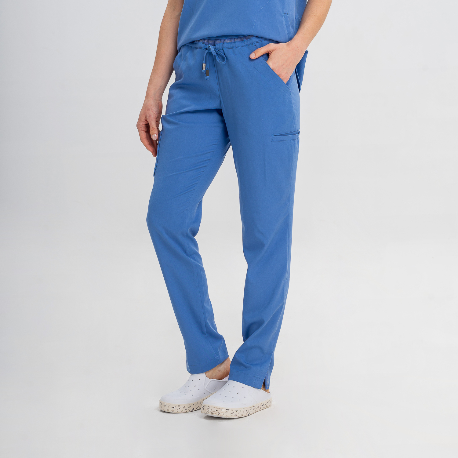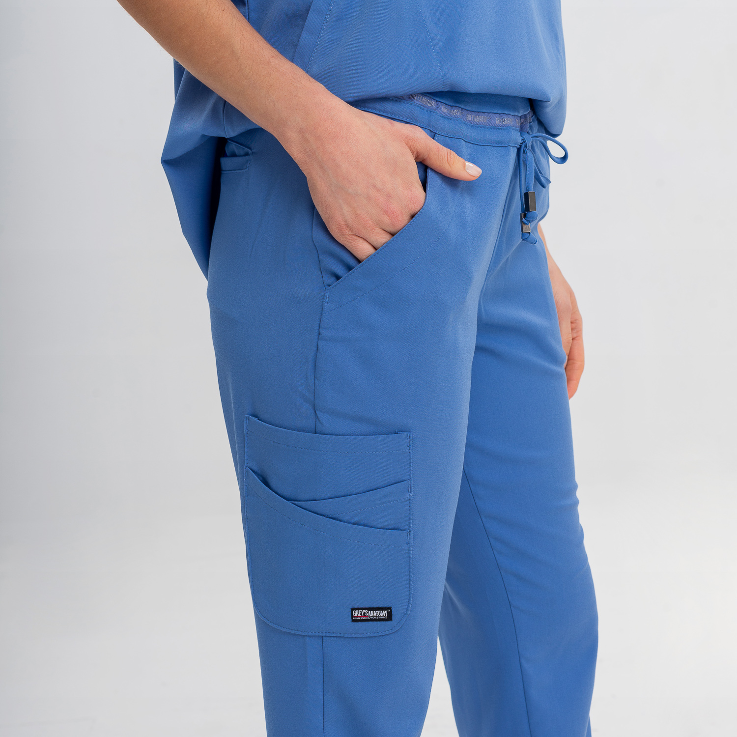 Pantalón Serena de la colección Grey’s Anatomy™ by Barco tiene un calce clásico, tiro medio y una pierna entallada que estiliza sin apretar. Es recto, con dobladillo y pequeñas aberturas en los tobillos. La cintura es elástica, con cordón de ajuste al tono.